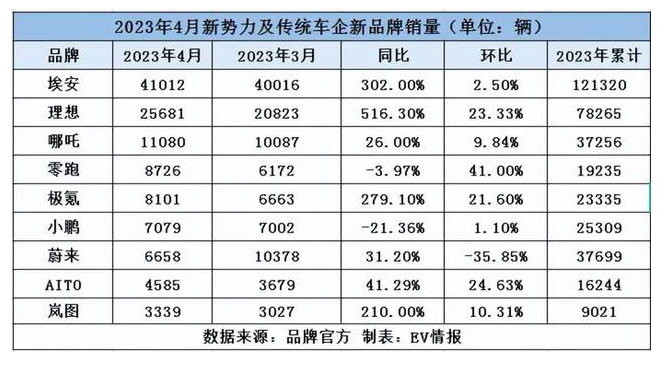 而在销量方面,李斌曾表示如果今年接下来每个月销量还是1万辆的话,自己就得和秦力洪(蔚来总裁)找工作去了,但从4月的销售成绩来看,蔚来仅交付了6658辆,且在新势力销量榜单中排名垫底。其它新势力车企已经缓过气了恢复销量增长,只有蔚来还在“掉头向下”。