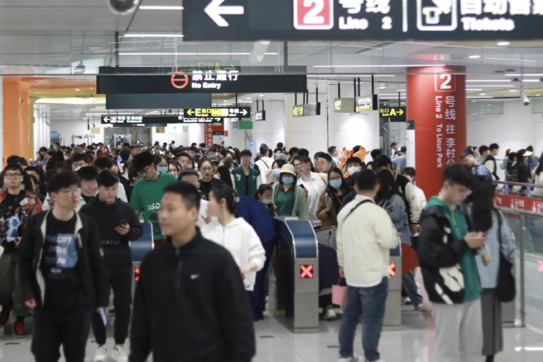 做一个对比,同为北方城市的天津,在4月28日和5月1日两天,地铁客流量先后两次突破历史纪录,分别达到206.8万人次和210万人次。