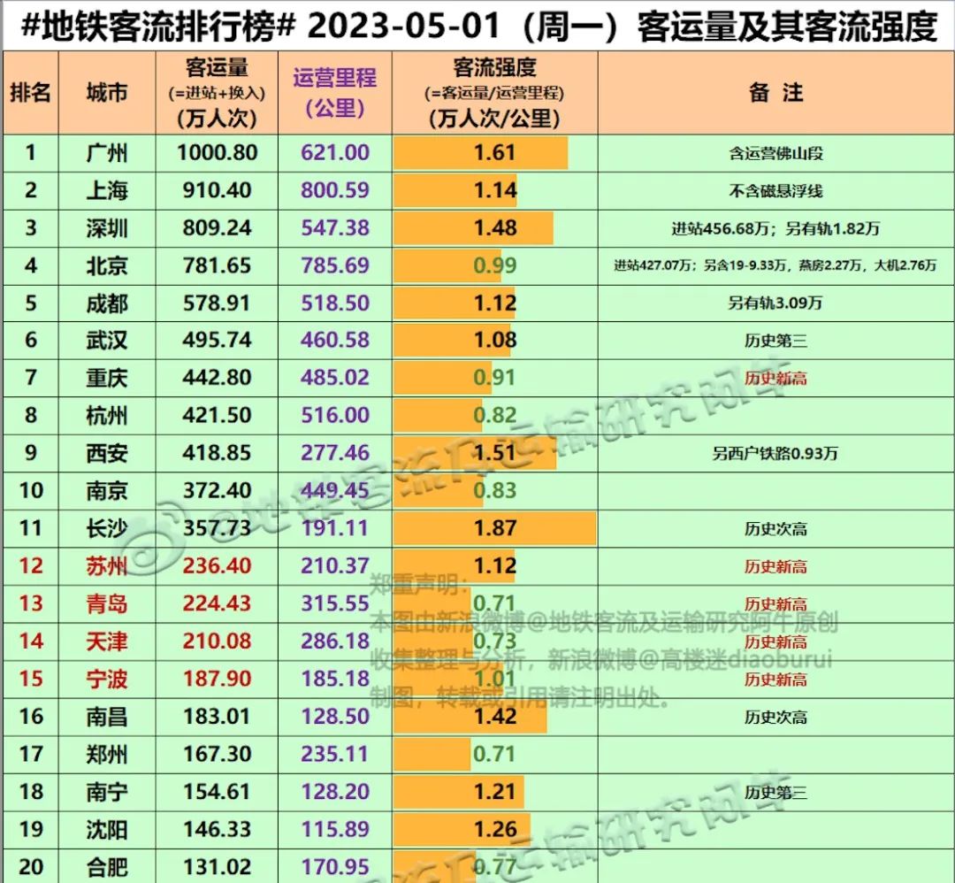 但更为直观的还是市内的地铁数据。