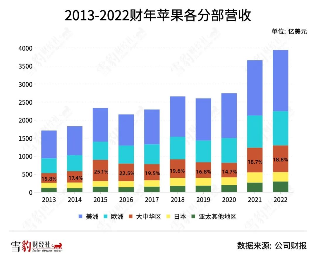对已进入印度市场25年的苹果而言,这份成绩单远远不够支撑库克对其寄予的厚望。 作为对比,2023年Q1,苹果手机在中国市场的份额为19.9%(Counterpoint数据);2022财年,大中华区为苹果贡献了742亿美元的收入,是苹果仅次于美洲和欧洲的第三大销售地区。截至今年4月底,苹果已在大中华区开设55家零售店。