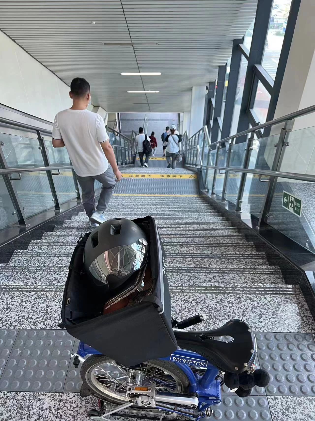 ▲许然带“小布”折叠自行车进地铁。图 / 受访者提供