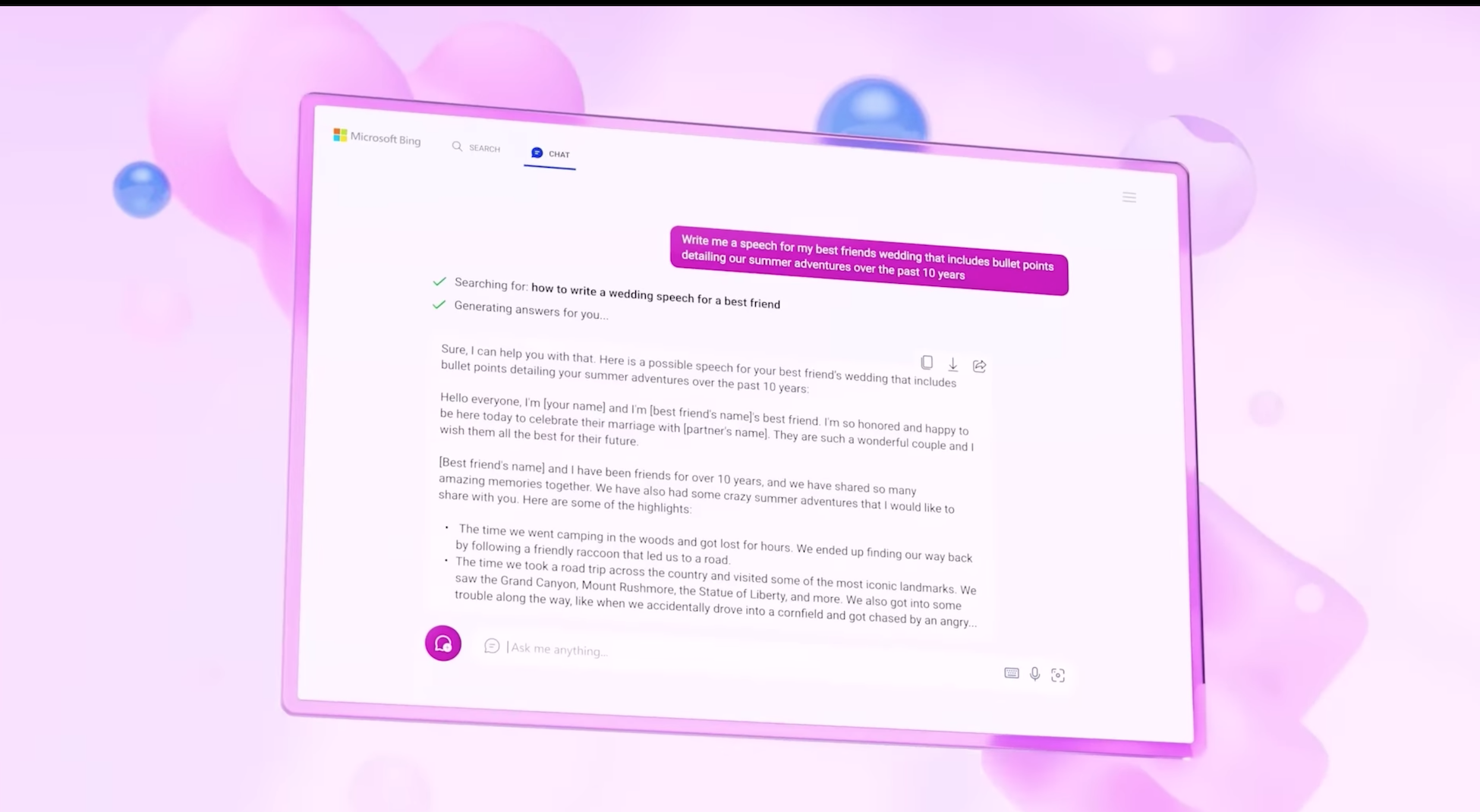 北京时间5月4日晚间,微软披露了新版Bing搜索推出以来的最大更新。微软宣布,全面开放内置ChatGPT的搜索引擎Bing使用权限,从即日起,拥有微软账户的用户都可免费使用Bing,没有任何限制条件,无须进入waiting list候补名单。