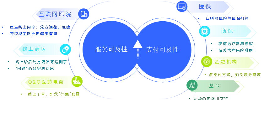 互联网医院提升健康管理服务可及性。互联网医院的大范围普及实现了“医生”可及,为患者在药物调整和定期延续用药处方上提供了极大的便利。