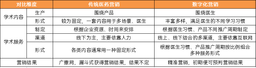 传统医药营销与数字营销在学术内容、服务形式的区别