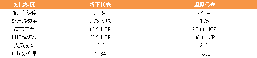 线下代表和虚拟代表的部分维度对比,资料来源:清赟科技(HCP指医生)
