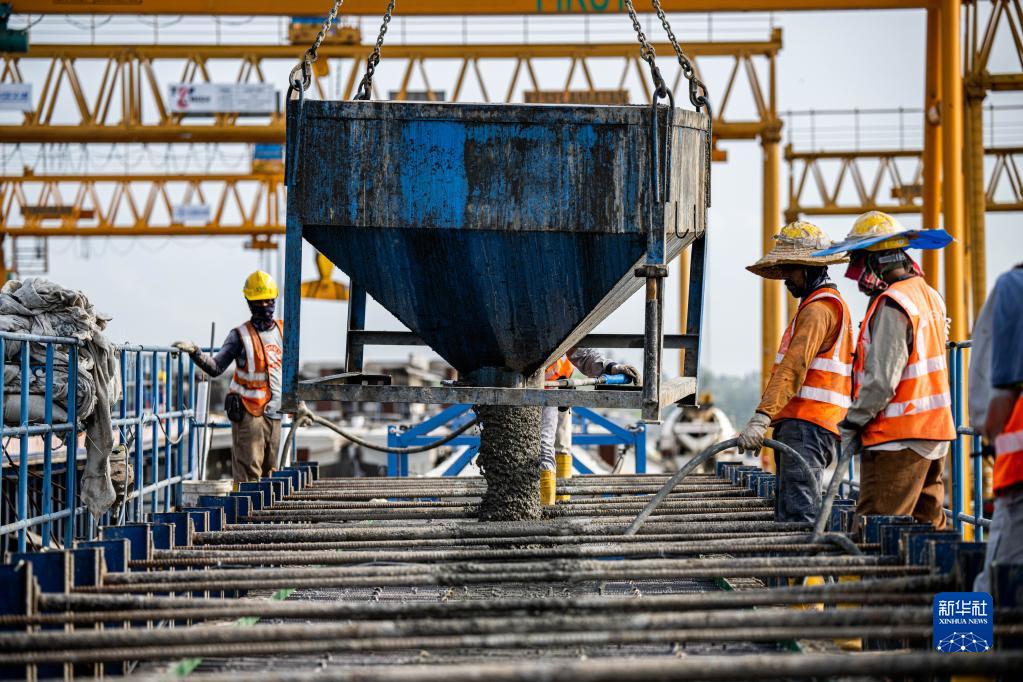 4月26日,工人在马来西亚吉兰丹州的马东铁项目一分部5号桥建设现场工作。新华社记者 朱炜 摄