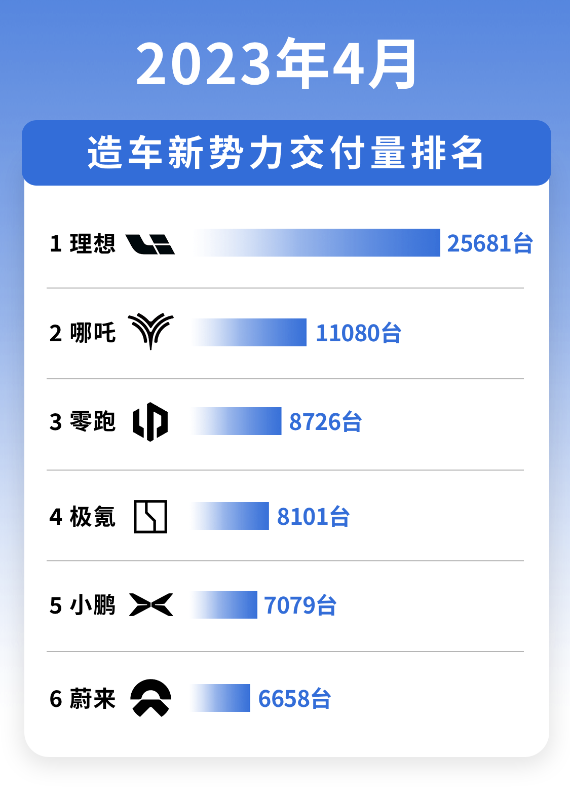 每个月1号已经成为造车新势力固定提交成绩单的日子,而消费者也从变化的交付量数据中清晰明了地感受到一家企业的成长速度。从各造车新势力公布的数据来看,零跑汽车已经超越蔚来汽车和小鹏汽车,重新回归到新势力月交付前三的位置。对于极氪和深蓝等传统汽车制造商的新能源品牌,零跑汽车也巩固住在新能源市场的地位,稳居一头。