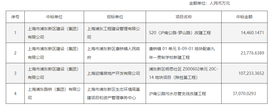 浦东建设:子公司近期中标总计18.25亿元工程项目
