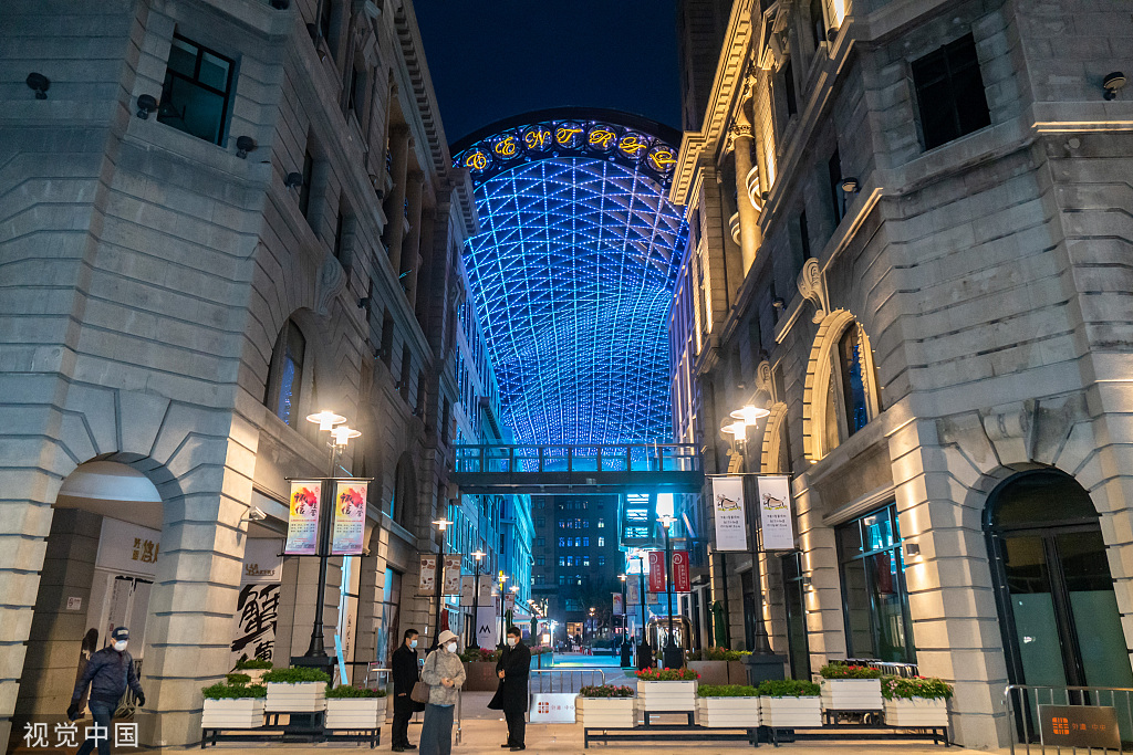改造后,该建筑中央运用内庭独特的空间优势,联动美轮美奂的玻璃穹顶、经典老建筑的墙体和炫酷的裸眼3D大屏,打造一个多媒体展示的立体空间,通过历史建筑和现代科技的融合,让市民游客体验“建筑可以阅读,街区适合漫步,城市始终有温度”的光影演绎。