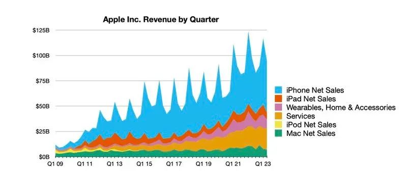 究其原因,主要是iPad和Mac拖后腿了。来自于iPad的营收为66.70亿美元,同比下滑12.76%;来自于Mac的营收为71.68亿美元,同比下滑31.3%。