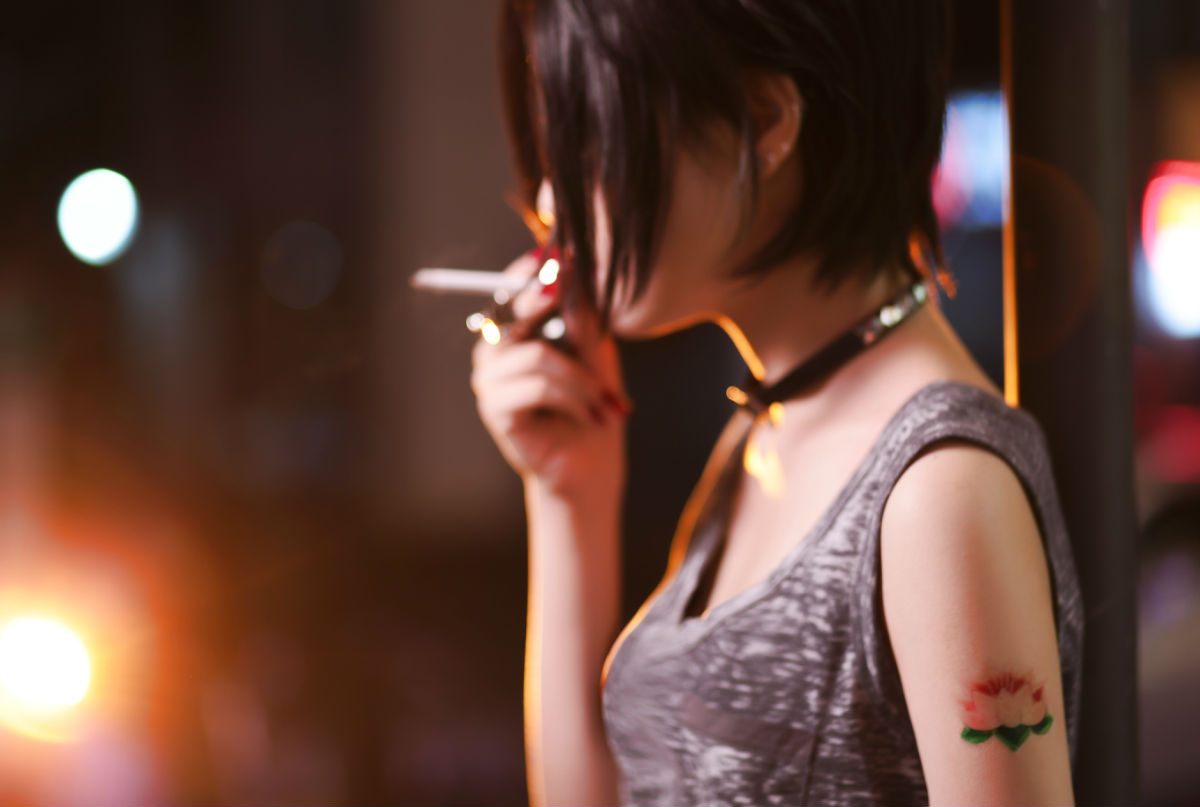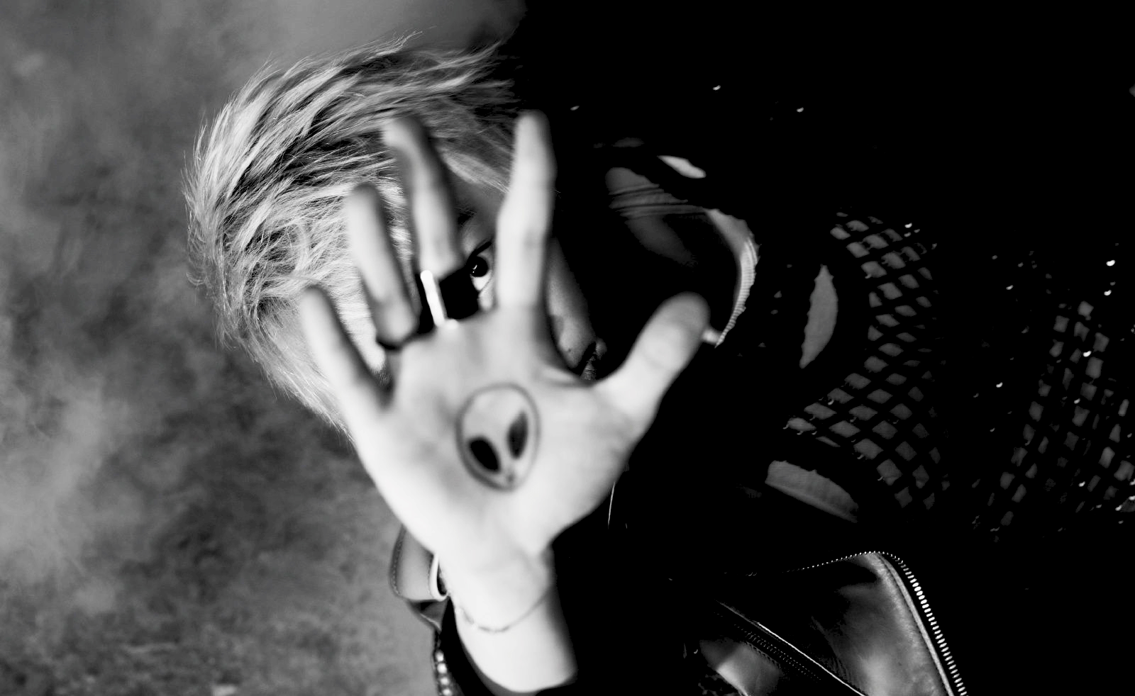 手心充满想象地纹着一个外星人,这是源于她喜欢的一首日文歌《Alien》,手指上还有一朵樱花图案。
