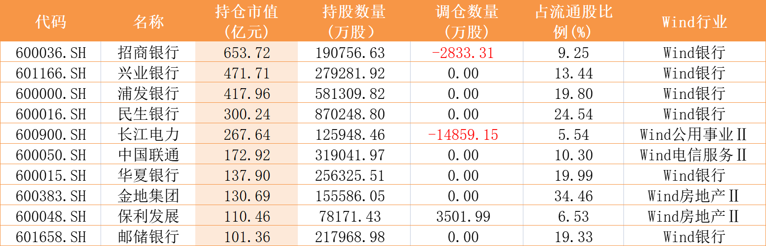 从个股持仓市值来看,险资延续了此前对于金融业大盘蓝筹股的偏爱,前十大重仓股中银行股包揽六席,且多只银行股持仓股数维持不变。