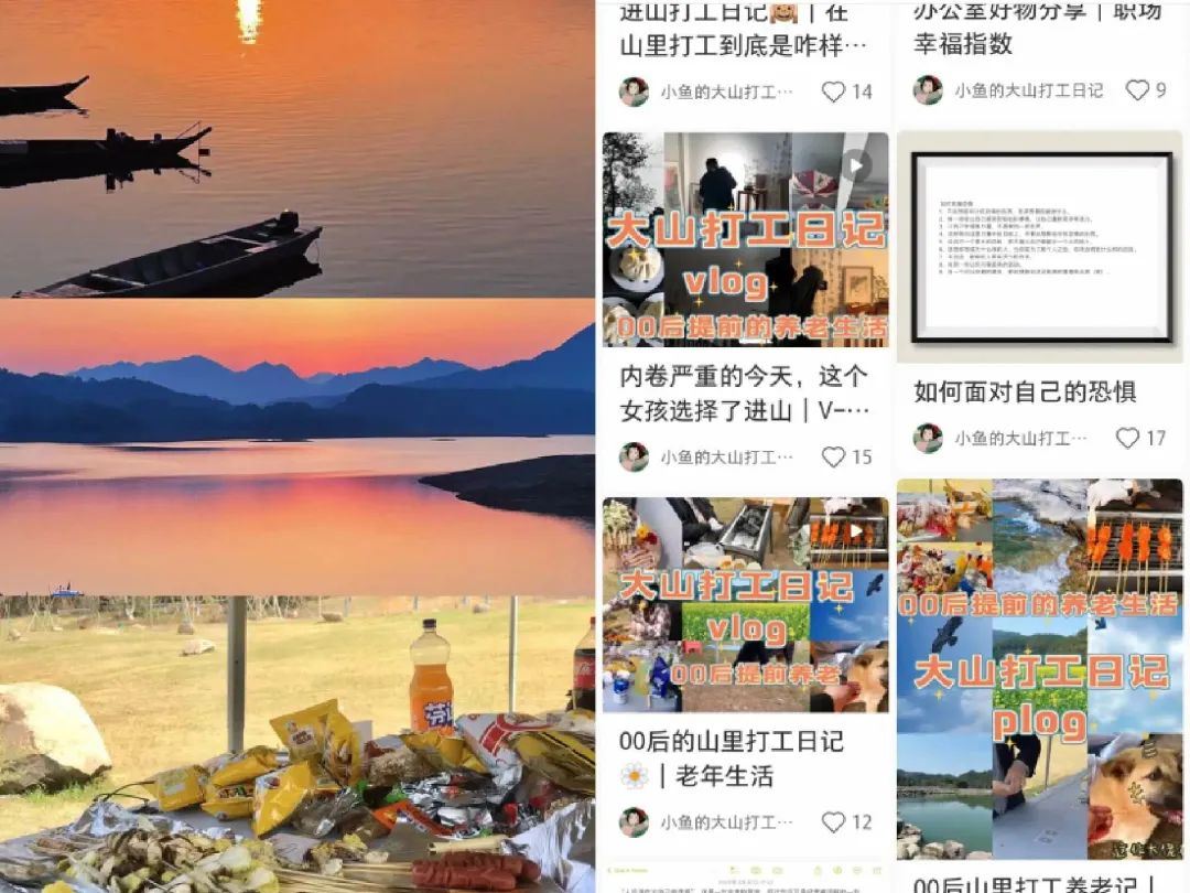 图/进山打工日常(左)小鱼的社交分享(右),来源/@小鱼的大山打工日记 小红书平台