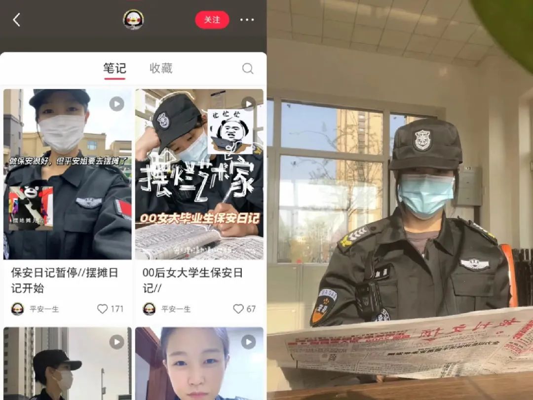 图/平安分享的保安日记(左)当保安(右),来源/@平安一生 小红书平台