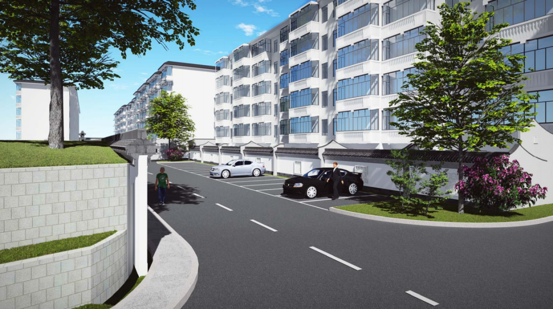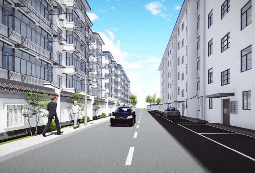 焕新升级也为老小区注入艺术气息。小区闹中取静,内藏一处景观园林:未来人们由中原路进入后,沿路映入眼帘的是借用吴冠中大师粉墙黛瓦的江南水乡画风,围墙和马头墙营造出别具风韵的“江南印象”。同时,整体改造设计充分考虑到居民、军属的职业归属感,其白色的色调令人想起海军制服与医护人员的工作服,让大家住得安心,也更舒心。