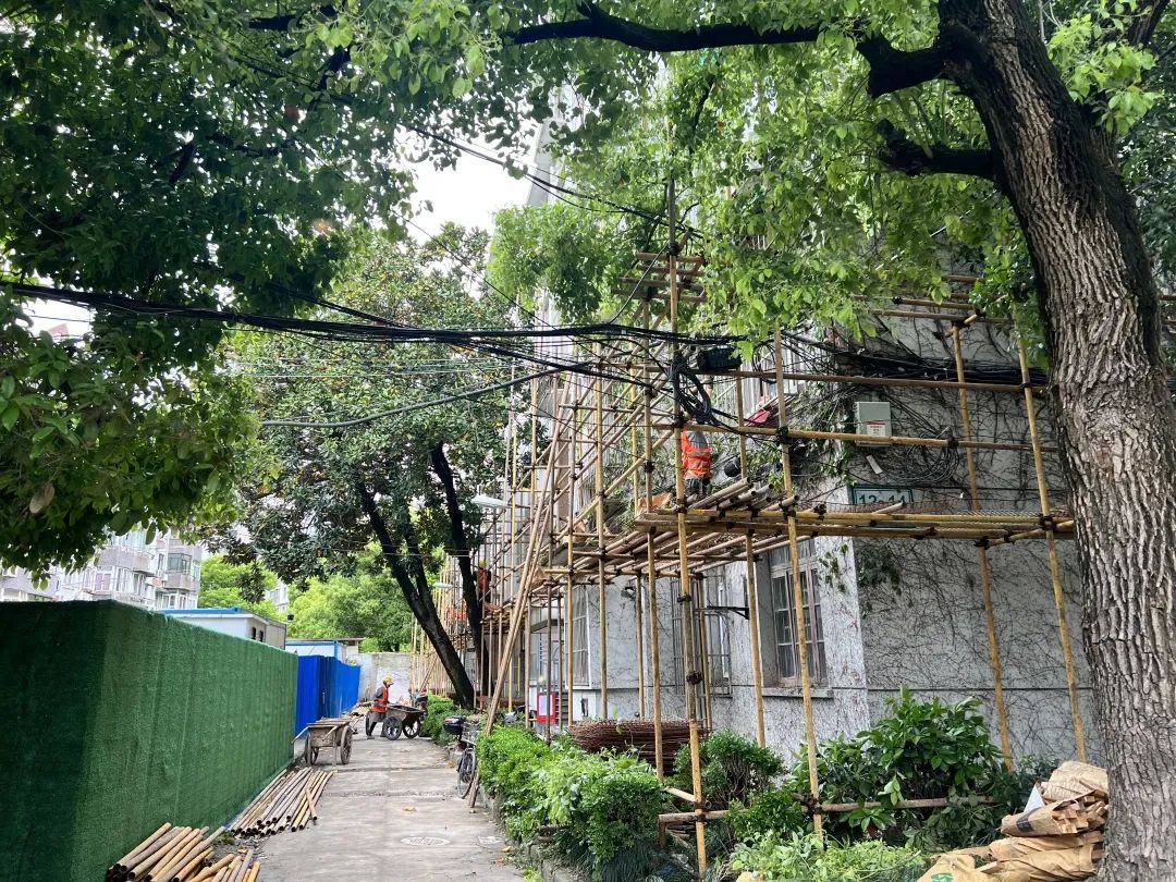 老旧小区房屋修缮,难就难在“人心”。记者了解到,长海新村小区占地面积约27632.5㎡,共有21栋建筑,居民645户。然而,长海新村存在历史遗留问题,诸如天井违建、空调外机放置不当等。如何劝说居民自愿整改,让房屋修缮顺利进行?属地居委会干部为此动足了脑筋。长海居民区党总支负责人任海松表示,此前社区调解专员负责协调整改事宜,如果发生矛盾,居民区则以调解干部为主,居委会书记、主任为辅,一起来解决矛盾。“比如楼体外墙空调有挂机需要移开的,我们会耐心进行劝说,引导居民配合施工方。”