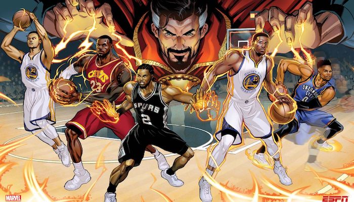 在球迷心中,詹姆斯和库里无疑是神级的存在,甚至超越了同时代的其他巨星。那么如果将NBA球员和超级英雄们结合在一起,会擦出怎样的火花呢?想象一下,如果球员们可以拥有《奇异博士》中的超能力,又会是怎样的一番景象呢?最近,ESPN就和漫威联手,将NBA球员们打造成了漫画风格的超级英雄,终极目标就是夺得本赛季的奥布莱恩杯。一起来看看这些不可思议的魔幻画风吧。