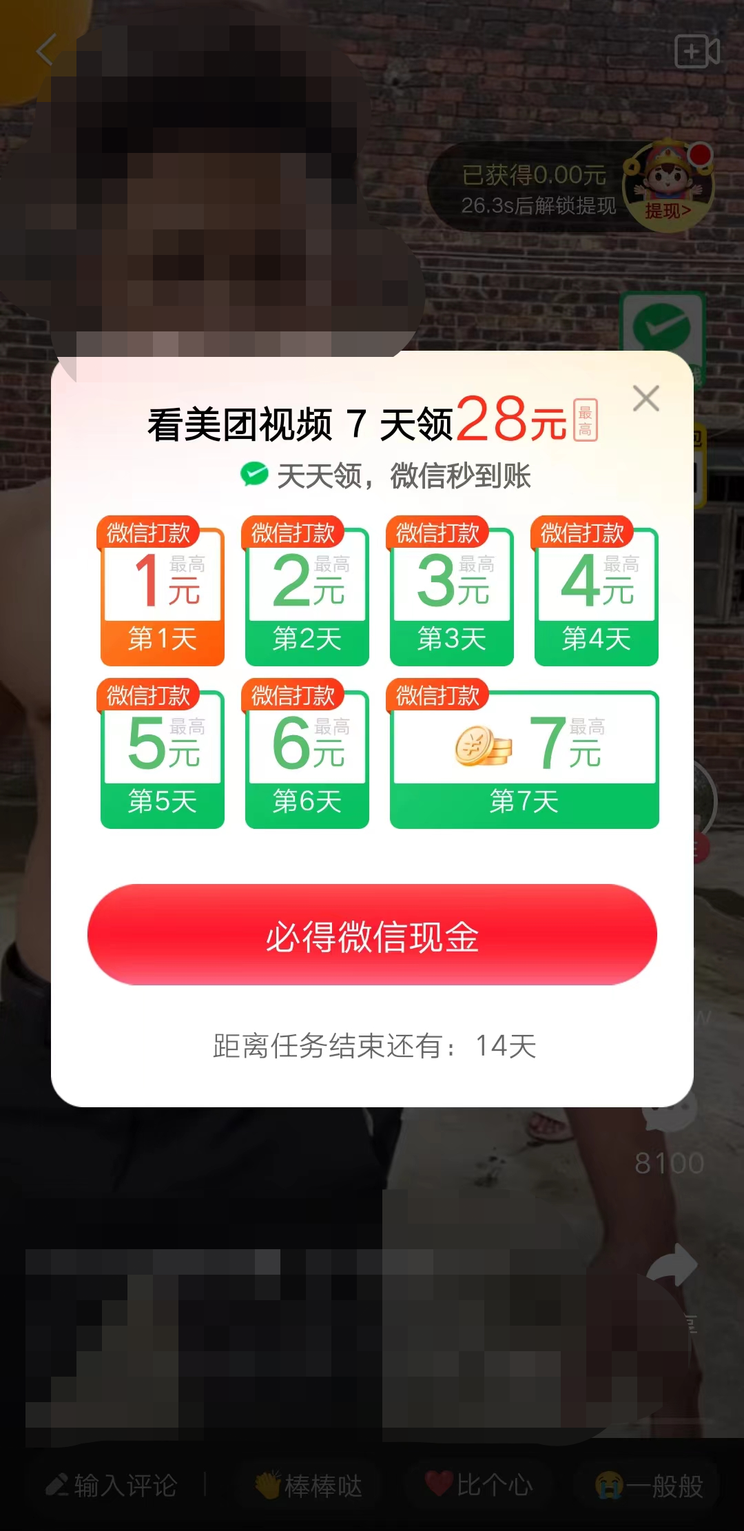 美团APP的短视频页面截图