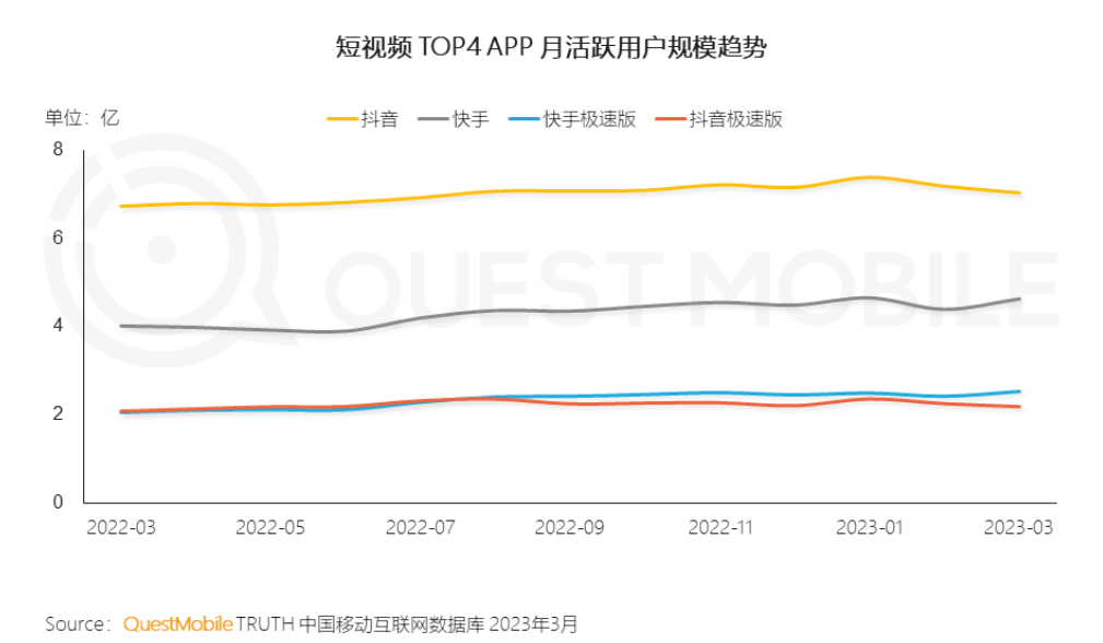 目前,短视频头部APP月活跃用户规模逐渐趋于稳定。从日均活跃人数看,抖音流量比快手稍好。有一组数据显示,抖音的日均活跃用户数超过了4亿,快手日均活跃用户数超过了3亿。