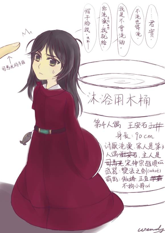而现在腐女们已经把魔抓伸向历史和语文课本,比如司马光 x 王安石,这样的政坛死对头却戳中了许多历史圈内腐女的萌点。她们像我们当年画“杜甫来了”一样把两个人惨无人道地画在一起,而且从温国公、王荆公两个冷门的称呼中各取一字,把这对 CP 命名为温荆。