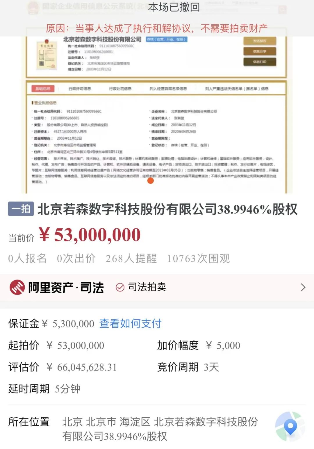 2020-2022年,若森数字多次陷入债权转让、股权转让、借款合同纠纷。其中2022年3月“阿里拍卖上线若森数字38.9946%股权”一事,更是引发粉丝热议,据了解,纠纷因若森无法如约申报上市、股东四人未对原告履行股权回购义务而起,虽然拍卖以“当事人达成了执行和解协议”被撤回,但越来越多爱好者开始学会从新闻了解更多与若森有关的情况,并为《不良人》的未来捏一把汗。