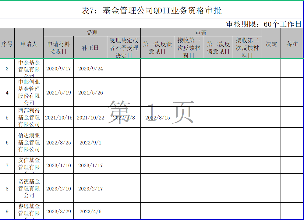 证监会审批信息显示,截至目前,仍有中金、中邮创业、西部利得、信达澳亚、安信、诺德、睿远等多家公募上报了QDII业务资格审批。