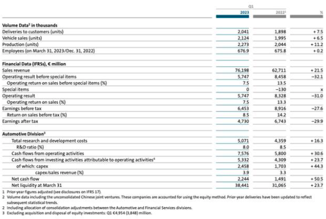 近日,跨国车企相继发布2023年一季度业绩报告。