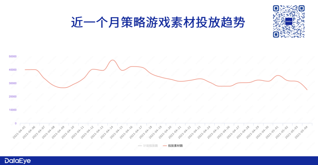 节前,DataEye研究院曾预估过五一期间SLG赛道将迎来一波投放高峰期,但根据DataEye-ADX数据显示,SLG厂商并没有在五一期间进行大范围的争夺用户,并且素材平均投放量甚至不如四月中旬。