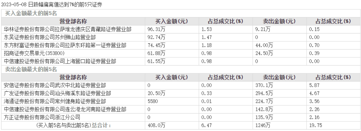 从西陇科学5月8日龙虎榜来看,安信证券股份有限公司武汉中北路证券营业部、广发证券股份有限公司汕头梅溪东路证券营业部、海通证券股份有限公司常州健身路证券营业部分别占据卖出前三。
