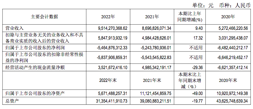 财报显示,在公司董事长刘宇的带领下,北汽蓝谷在2022年出现了增收不增利的情况,其年营收为95.14亿元,较上年同期的86.97亿元增长9.4%。归属于上市公司股东的净利润为-54.65亿元,较上年同期的-52.44亿元,同比亏损扩大了4.22%;归属于上市公司股东的扣除非经常性损益的净利润为-58.38亿元,同比亏损扩大了5.31%。