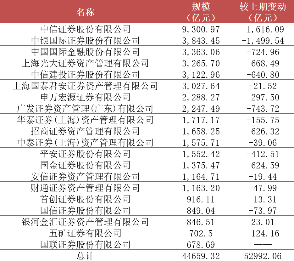 相比较而言,第3-6位的中金公司、光大证券资管、中信建投和国泰君安资管月均规模虽均维持在3000亿元之上,但就规模收缩情况看,仅国泰君安资管保持了较小的规模变动,其余均出现了较严重下滑。