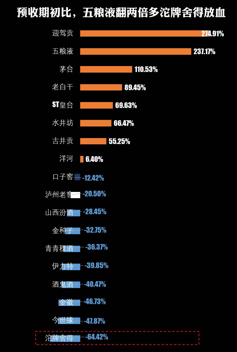 4、沱牌舍得,预收款居然下滑了64.42%,与之前非常抢眼的“ 营收增幅34.72%、排第一位” 形成巨大反差。庖丁解酒推测沱牌舍得实际的销售情况,可能并没有多大改观,前面的靓丽的营收数据,相当部分是来自去年的预收款调剂贡献出来的。 有待观察。