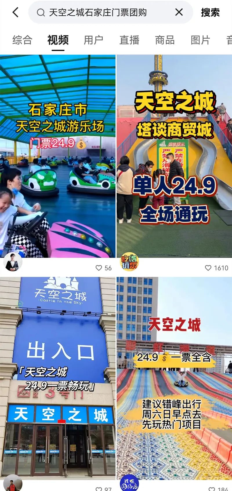以石家庄为例,石家庄的游乐场天空之城上线快手后,快手不仅和其他平台一样,选择了通用的补贴招数,打造更低的团购价格,吸引客户。