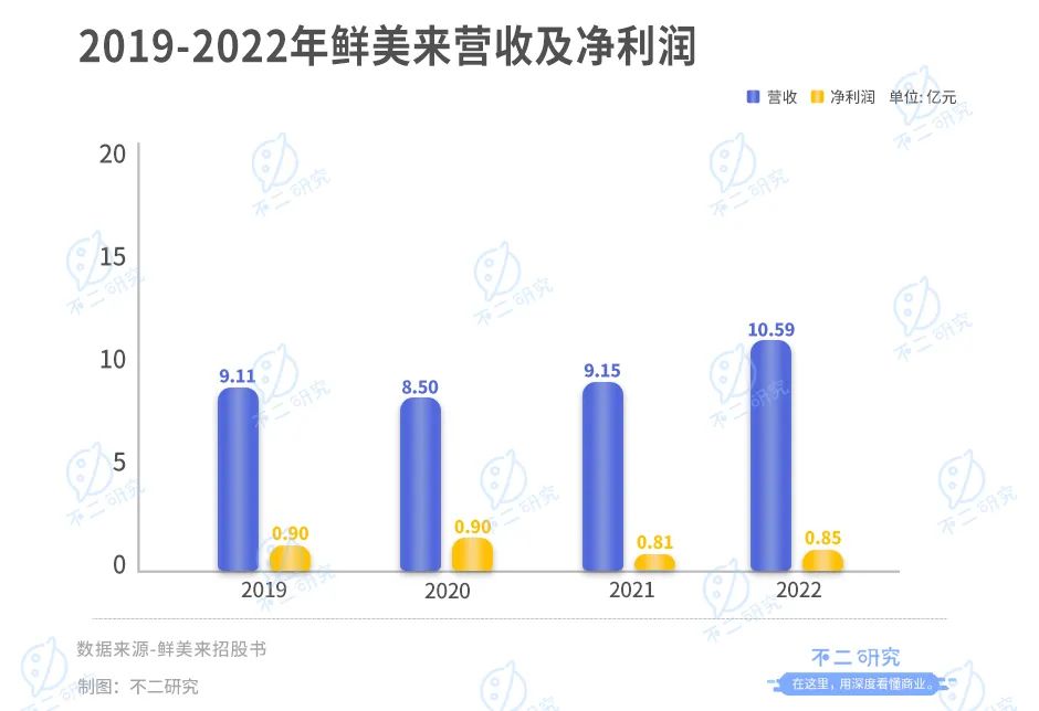 「不二研究」据鲜美来新版招股书中发现:2022年,其营收为10.59亿元,同比增加15.74%;同期的净利润为8518.74万元,同比增加5.03%。