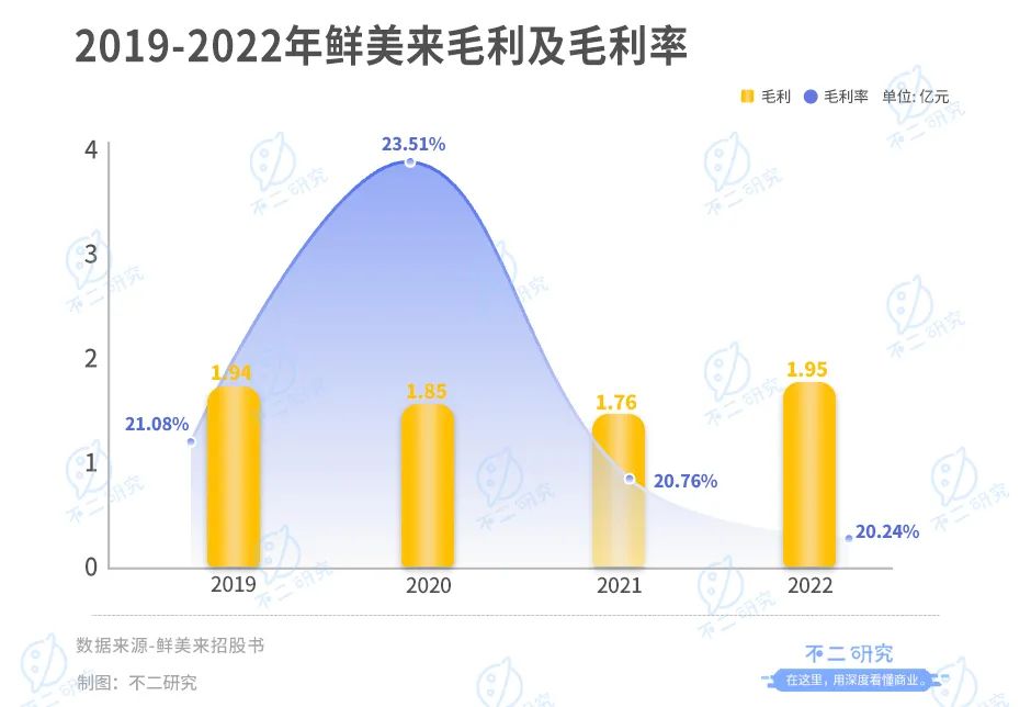 同时,鲜美来的毛利润和毛利率情况也不容乐观。