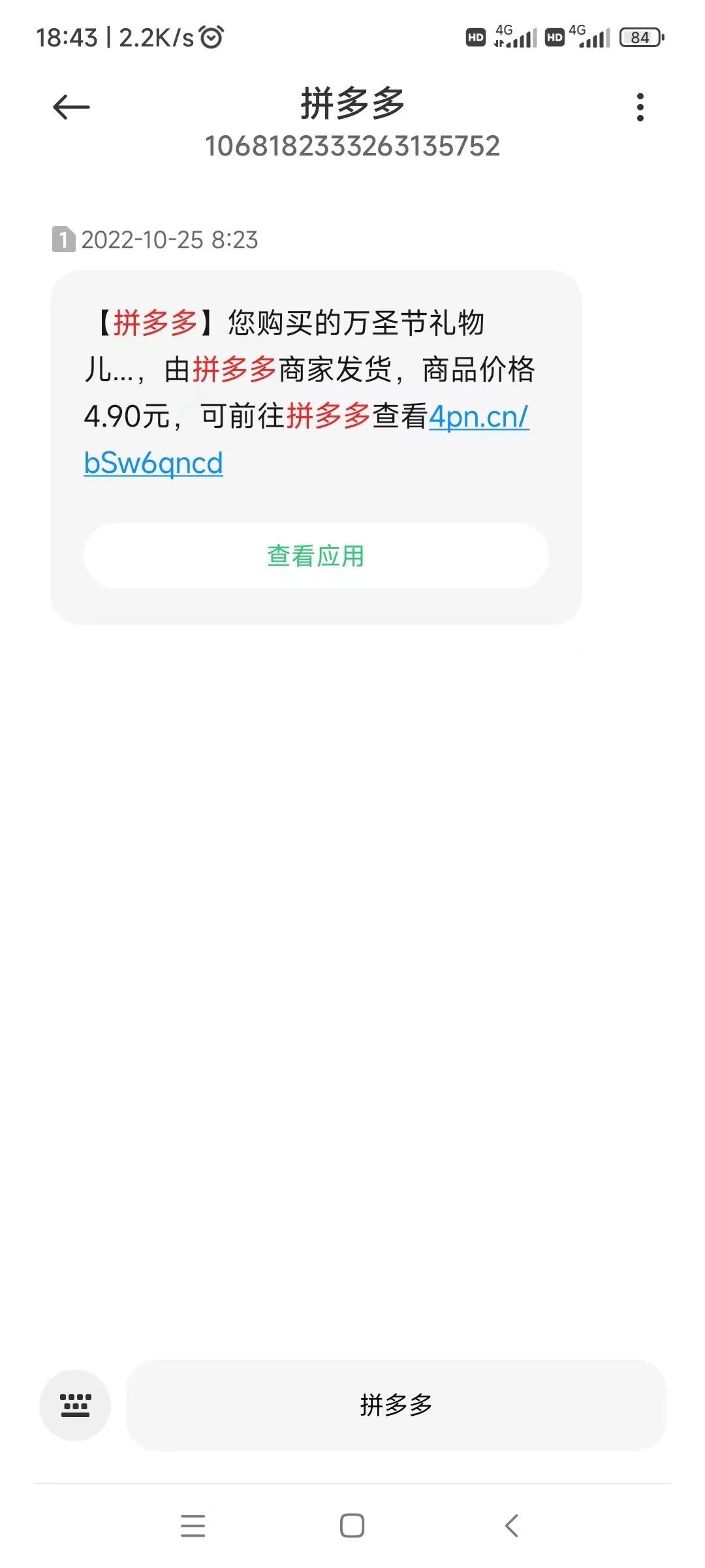 说这句话的是从事人力资源工作的刘丽。去年10月25日,她收到了一条拼多多的发货短信。然而,自己从没有在拼多多买过东西。