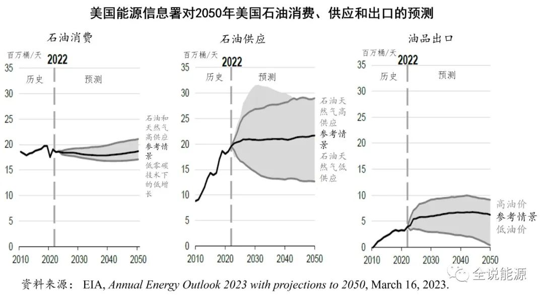 此外,根据2023年3月16日发布的至2050年年度能源展望报告,美国能源信息署的预测,所有政策情景假设下,2050年美国仍然将保持石油产量净进口国的地位。