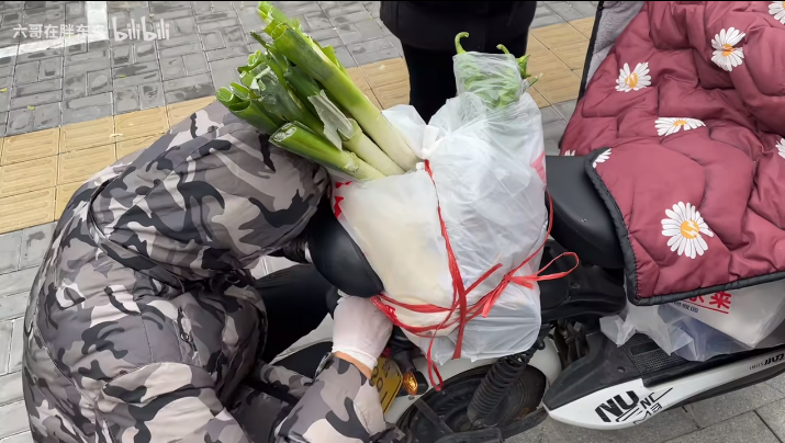 比如,胖东来工作人员提供捆扎固定服务,方便骑电动车回家的顾客。