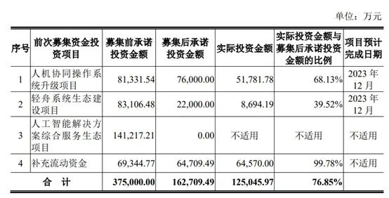IPO缩水,意味着云从科技原定的募投项目进度必定要打折扣。根据云从科技发布的前次募集资金使用情况,其拟投项目中,只有“人机协同操作系统升级项目”和“轻舟系统生态建设项目”正按照既定计划推进,且投入金额缩水,进程也缓慢。用于补充流动资金的份额在2022年底基本耗尽。