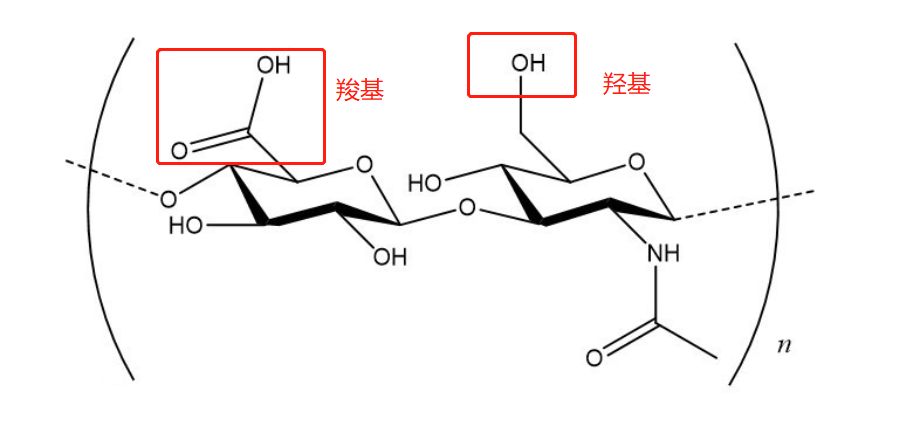 双糖单位中的羧基除与金属离子结合形成盐外,也有科学家将其与氯硅烷类物质反应形成酯类化合物,以实现对透明质酸的改性从而获得更多样的功效。