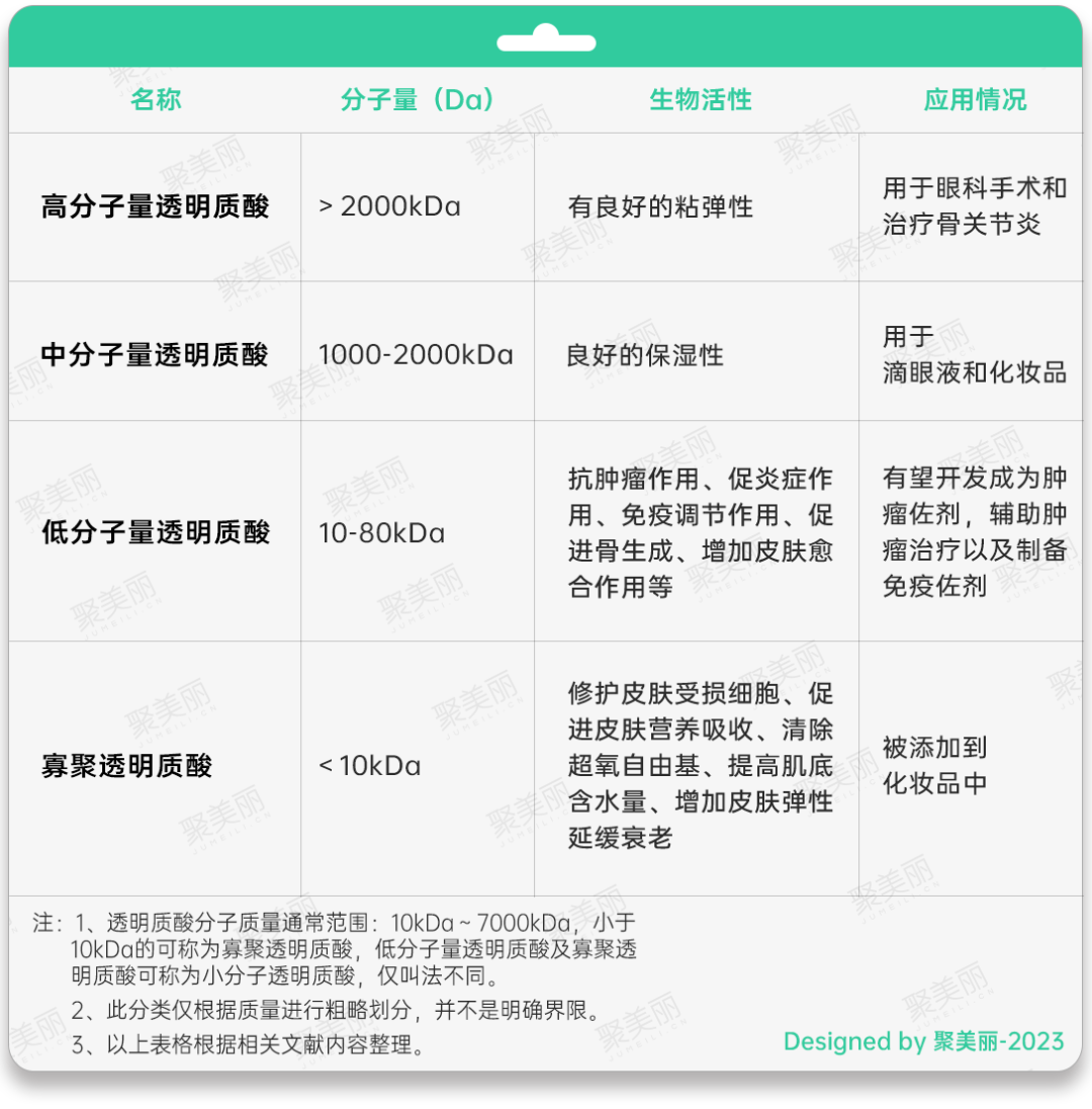 众所周知,不同聚合度(形成分子的双糖单位数量不同)的透明质酸功效并不相同。
