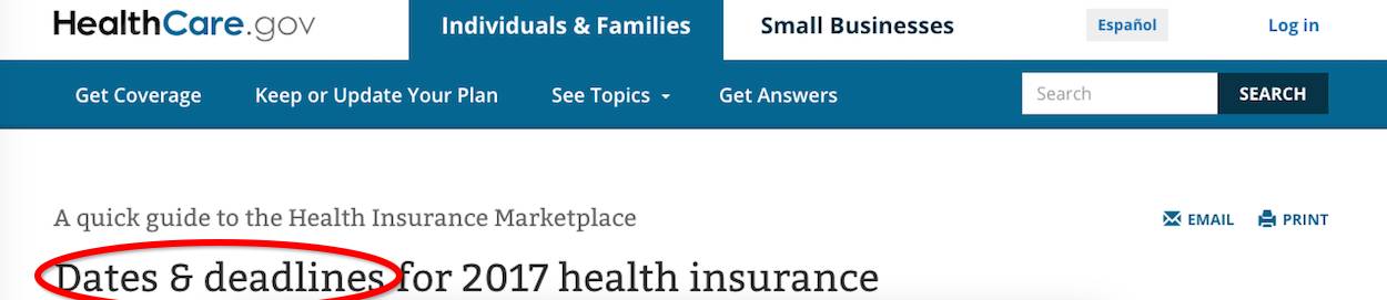 2016年12月15日:如果你希望生效时间在2017年1月1日,这将是你最后的注册时间,如果你去年保险在2015年1月日生效,必须在此日或之前注册,以避免保险空档期。