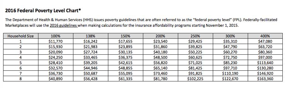 只要你的家庭收入在100%到400%的联邦贫困线内,都有可能拿到补助。以下是2016年联邦贫困线,在申请2017年医疗保险是可参考该标准申请补助: