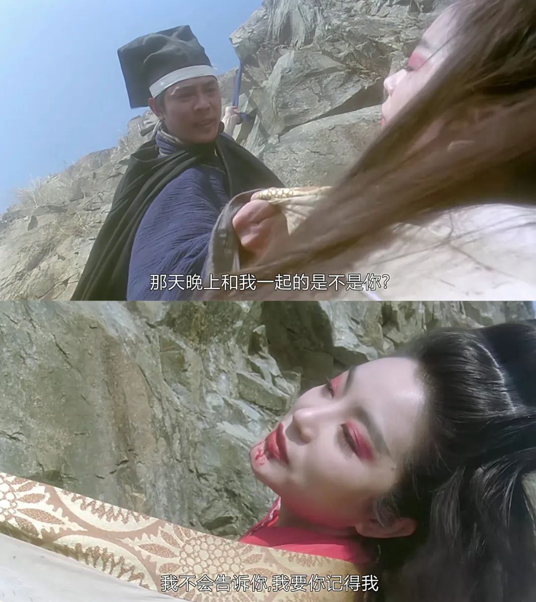 黑木崖大战时,令狐冲还在求证:“那天晚上和我一起的,是不是你?”林青霞画着战损妆美美坠落,心有不甘道:“我不会告诉你的,我要你记得我,让你后悔一辈子。”妈呀,怎么这么会改!正当壮年的李连杰配上风韵犹存的林青霞,妥妥傻直男被TS大佬拿捏的酸爽感。