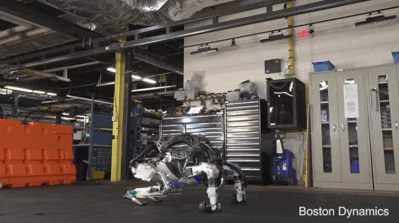 其技能的迭代肉眼可见,仅仅过去一年,比起在2016年走路还踉踉跄跄的样子,Atlas的动作明显流畅了很多,不仅能在台阶之间跳跃,甚至还能来个后空翻。2018年,Atlas学会了跑步,能跨越障碍物,一步步跃上宽阔的台阶。次年,它已经能连续跳跃、翻滚和倒立。