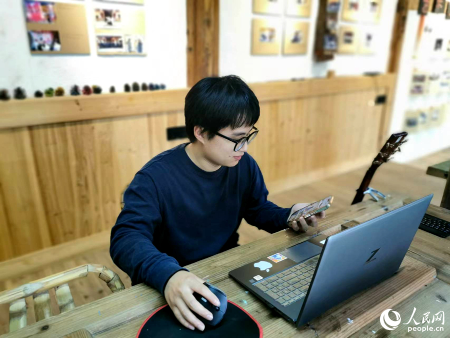 王浩冉正在设计古民居的改造方案。人民网记者 林晓丽摄