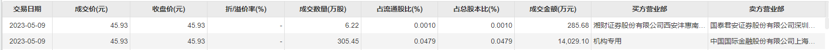 恒瑞医药5月9日大宗交易成交311.67万股,成交额1.43亿元,占当日总成交额的9.66%,成交价45.93元,较市场收盘价45.93元持平。
