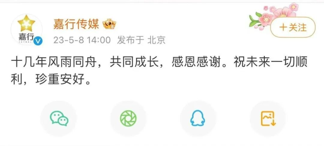 5月8日,杨幂以八字箴言“共有从前,各有未来”官宣与嘉行传媒分手。随后#杨幂官宣与嘉行解约##杨幂换头像##嘉行删除杨幂照片#等多个话题抢占微博热搜前列。