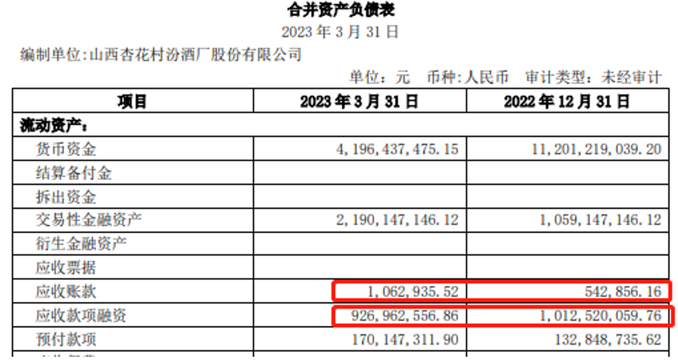 最新发布的年报显示,山西汾酒应收账款大幅增长,同时应收款项融资额又有所降低。这种现象,往往意味着经销商给酒企开承兑汇票拿货,再“压货销售”的意愿正在减弱。