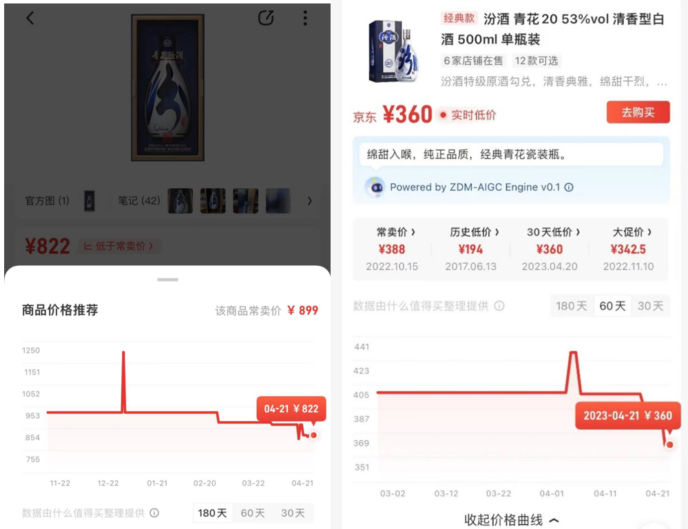 青花30复兴版,青花20线上售价,来源:什么值得买